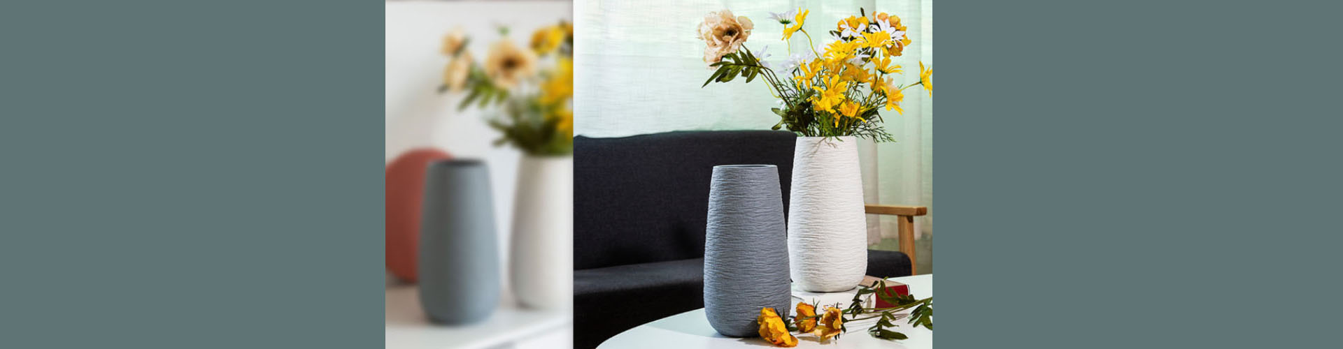 轻奢高级质感陶瓷花瓶高颜值ins风现代简约灰白色仿真干花插花器