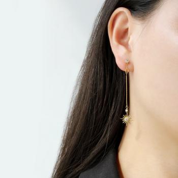 925纯银镀K金长款耳钉星形金色镶钻简约百搭