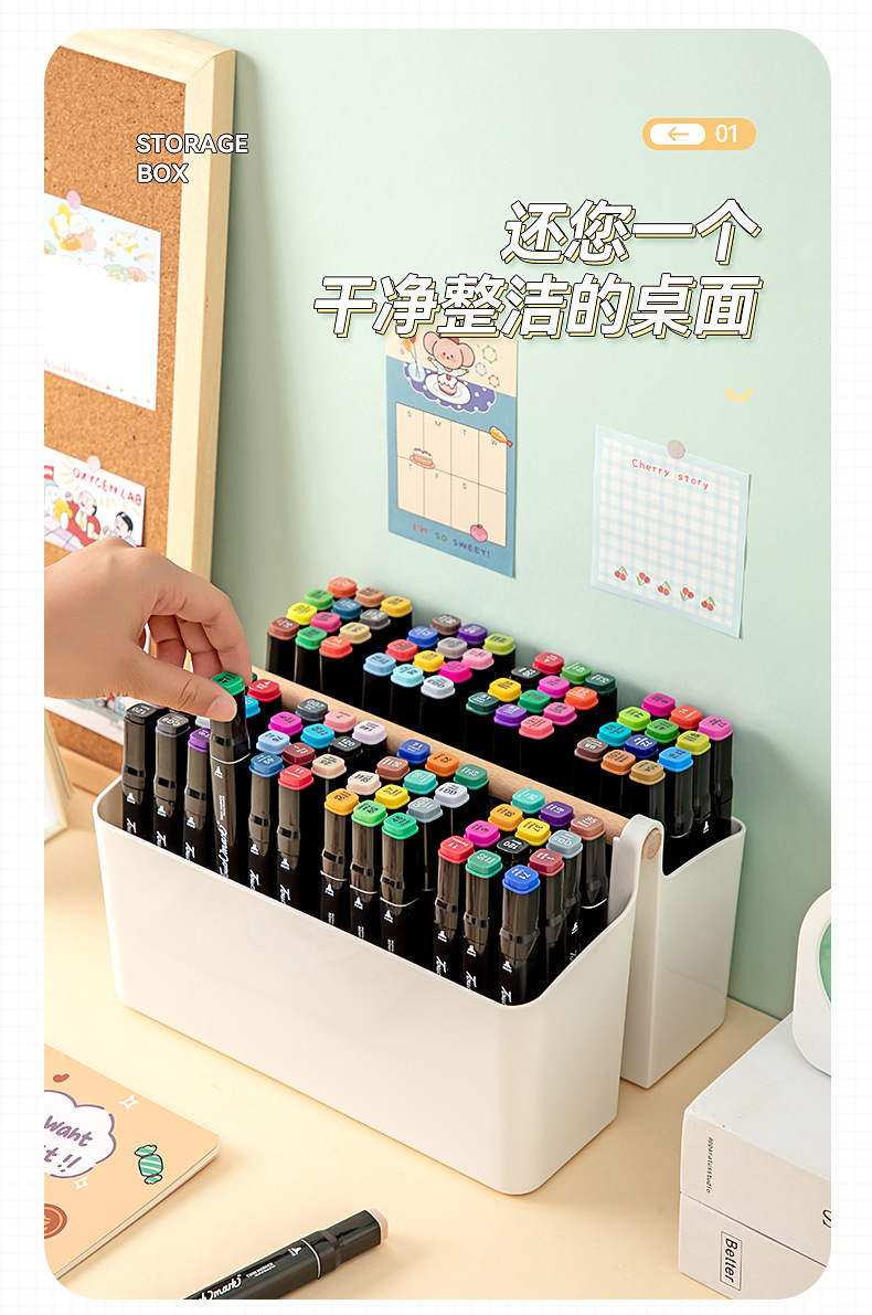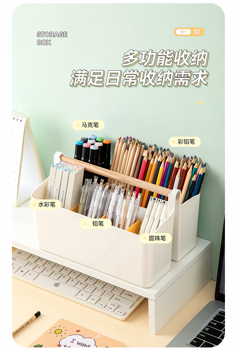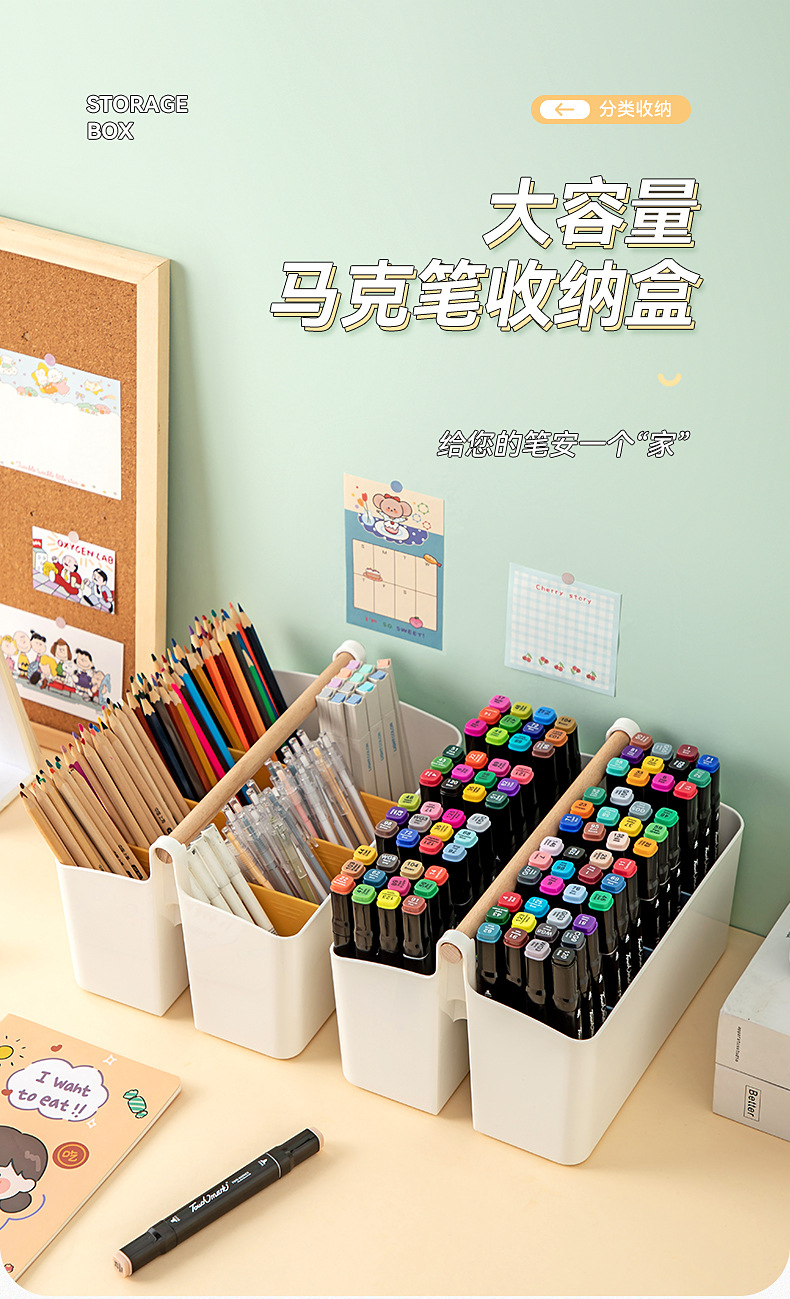 首页家居摆件收纳用品 超大容量笔筒收纳盒水彩笔儿童画笔铅笔彩色笔蜡笔马克笔女孩文具