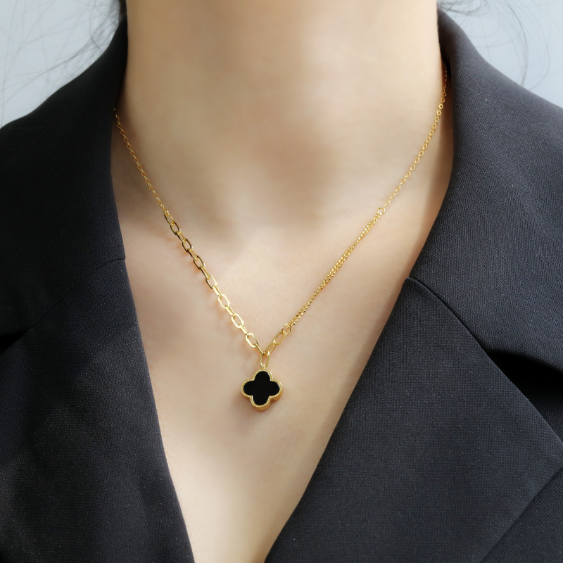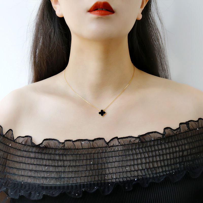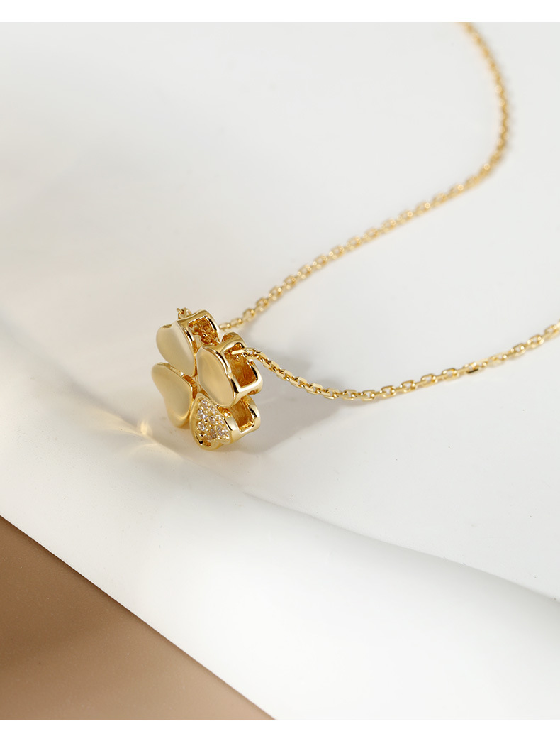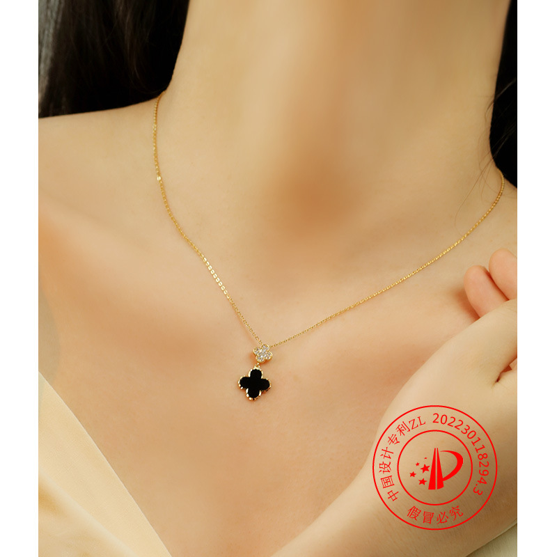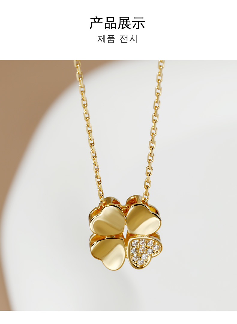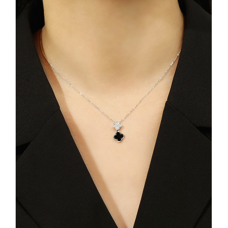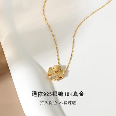 925银四叶草项链女百搭INS风电镀镶嵌锆石十字链