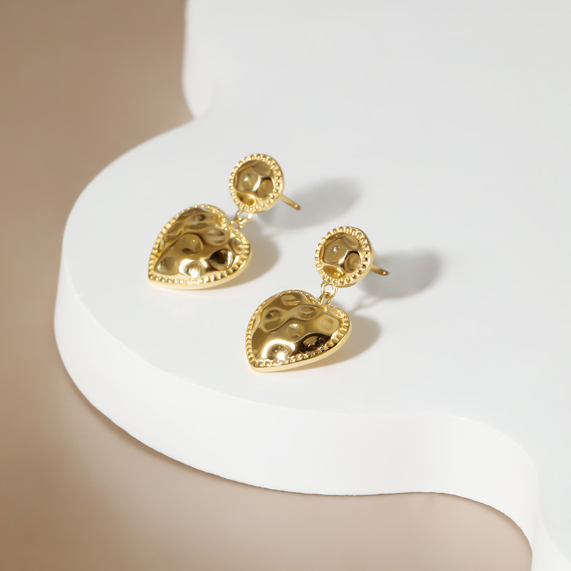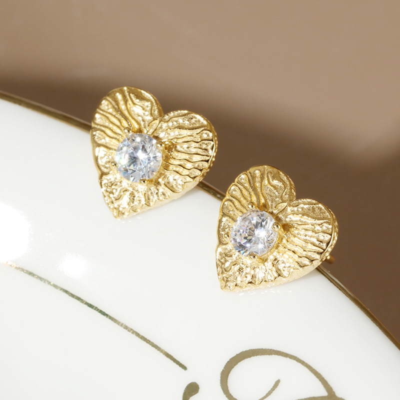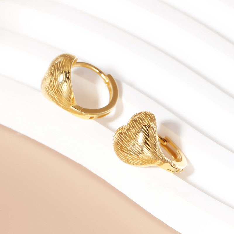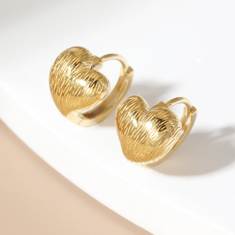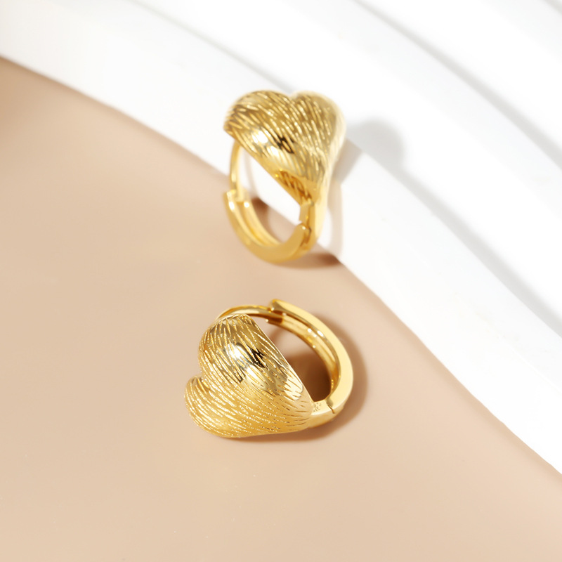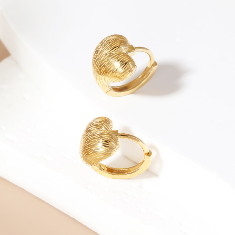 首页时尚饰物耳环 925纯银拉丝爱心耳饰小众百搭复古气质饰品