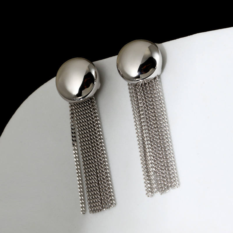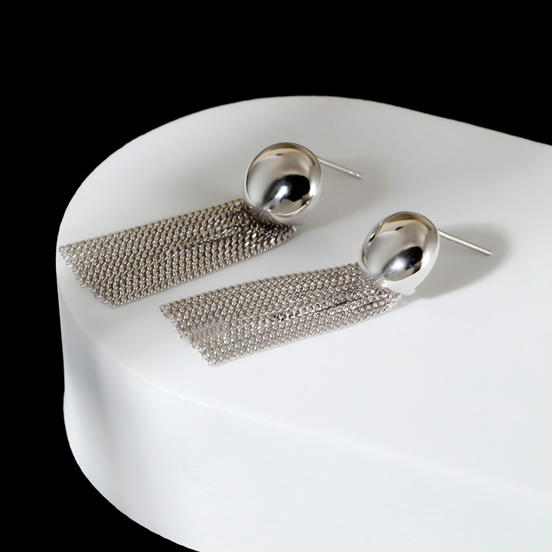 首页时尚饰物项链 925纯银圆形流苏耳环简约时尚ins风感饰品耳饰