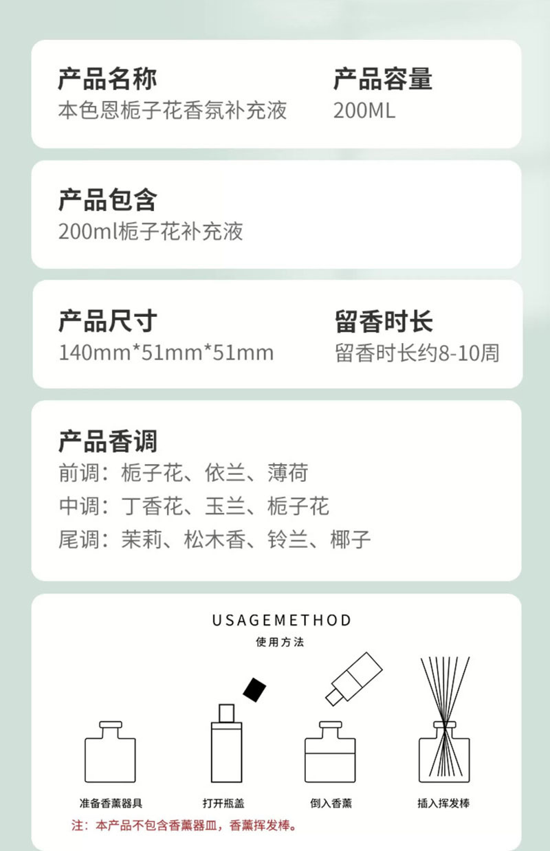 • 本色恩UT她栀子花香薰植物精油室内持久留香氛