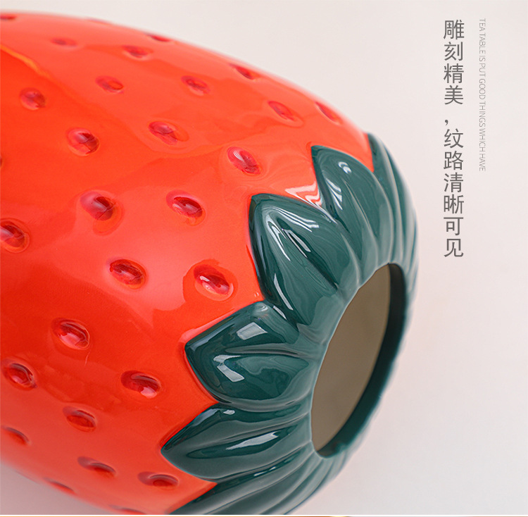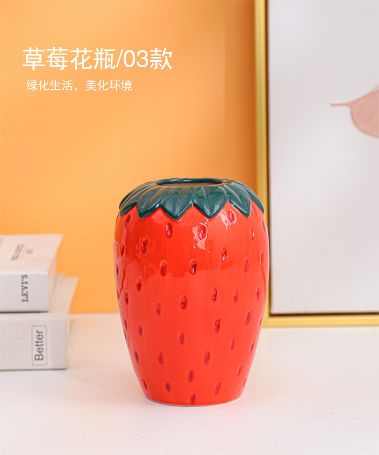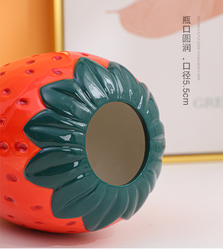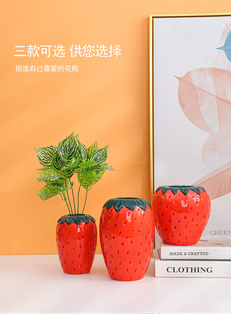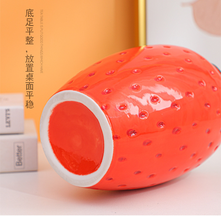 首页家居摆件家居饰品 仿真草莓陶瓷花瓶居家工艺北欧客厅卧室书房创意摆件