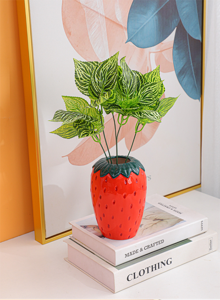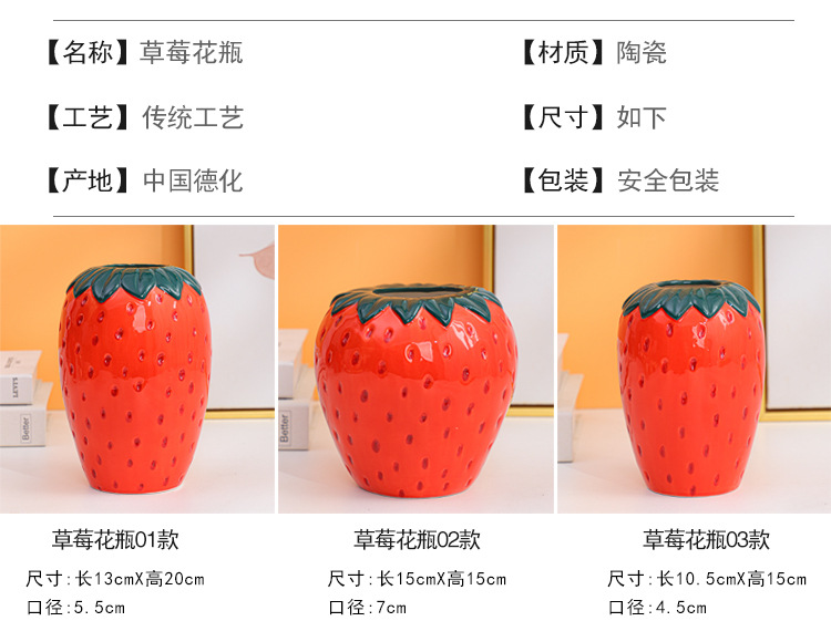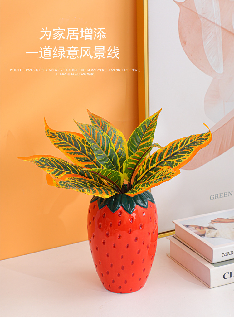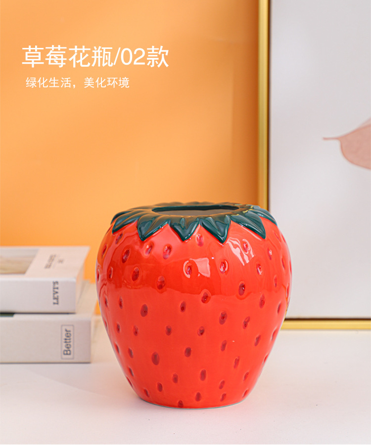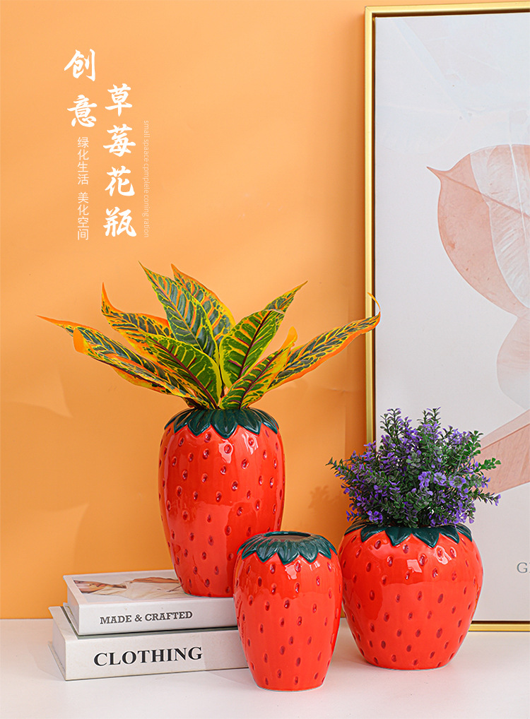 首页家居摆件家居饰品 仿真草莓陶瓷花瓶居家工艺北欧客厅卧室书房创意摆件